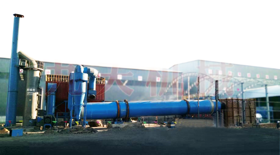褐煤辊破至30mm粒度以下,经皮带输送机输送至给料箱,滑入滚筒干燥机,由大倾角导料板将其迅速导向倾斜扬料区,随滚筒的转动和筒体的倾斜度,由筒底提至筒顶逐步落下,形成“料幕”,与湿物料同一端进入干燥滚筒的700-800℃高温烟气从中穿过使湿物料形成传导和对流质热交换,预热褐煤表面温度100℃并开始蒸发水分。经预热的湿物料进入中温干燥阶段,褐煤颗粒由外至里温度上升到100℃以上,大部分水分在此阶段被蒸发掉。随着物料与烟气的反复混合热交换,直至达到100℃热平衡点,褐煤水分停止蒸发,水蒸汽随烟气排出烘干机,褐煤残留水分达到工艺要求后,褐煤被排出干燥滚筒。